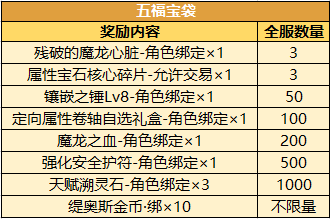 活动规则:1.活动期间参与活动收集并点亮五福,即可获得一份对应五福礼包。