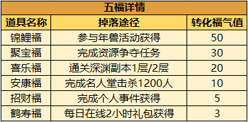 3.活动期间收集的剩余五福可转化为对应的福气值,累计福气值可获得对应档位奖励。