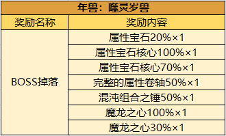 活动规则:1.活动期间每周六、周日晚上21:00年兽BOSS:噬灵岁兽在沙漠之渊1刷新,击杀BOSS及其下属即可获得珍贵奖励。